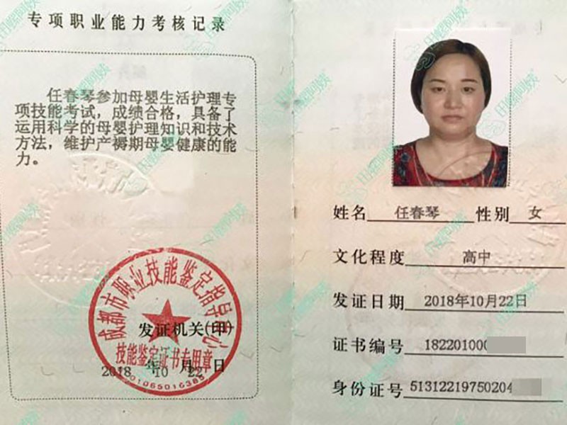 個人資料派出所備案 高級育嬰師證書 高級催乳師證書